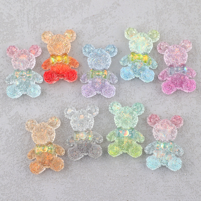 Hiasan Rambut Beruang Bercahaya Gradien Aksesoris Resin Dekorasi DIY Pakaian Topi Sepatu Lubang Dekorasi Grosir