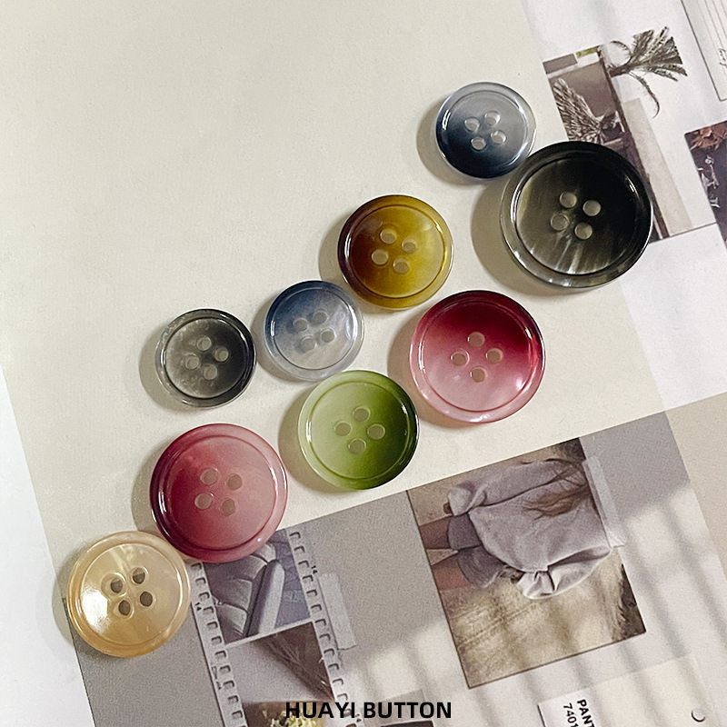Warna gradien bulat, empat mata mutiara kancing resin, mantel trench, gesper, mantel, kancing semua cocok
