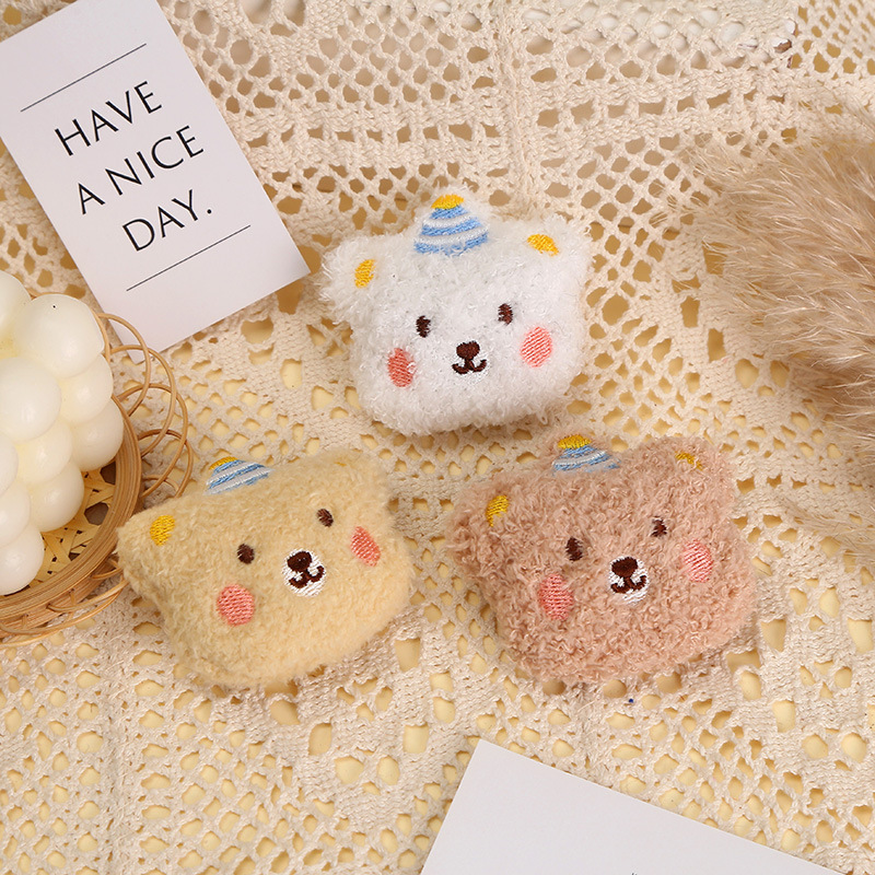 Bros boneka beruang lucu, aksesori pakaian dekoratif kartun mewah keriting perona pipi beruang aksesori kepala