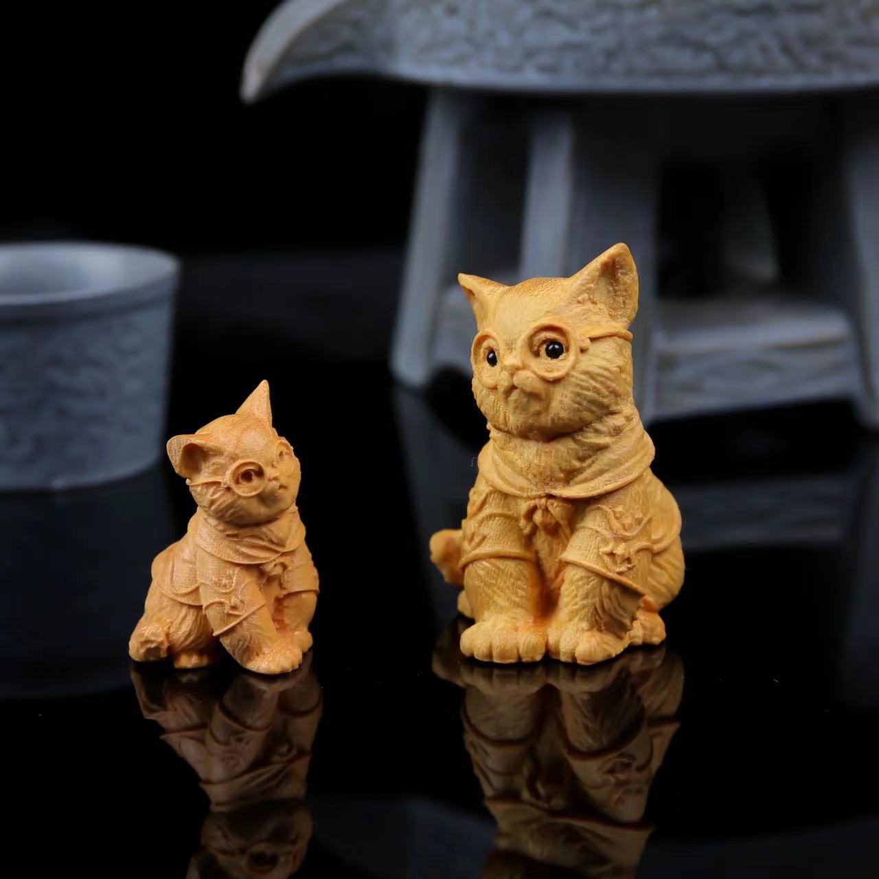 Boxwood gagang ukiran kucing dekorasi desktop Dekorasi kucing hewan peliharaan kucing Persia hadiah kreatif kerajinan anak perempuan