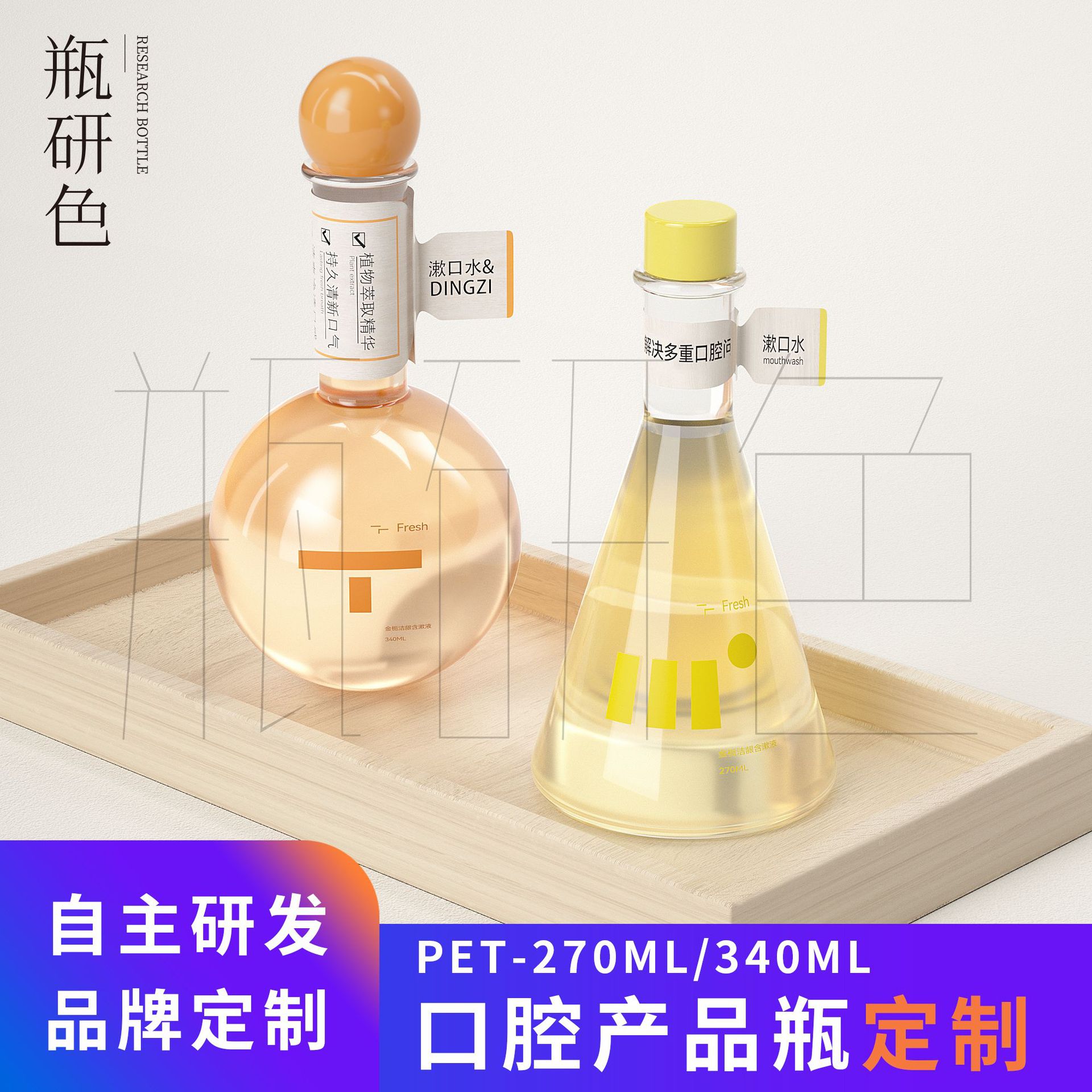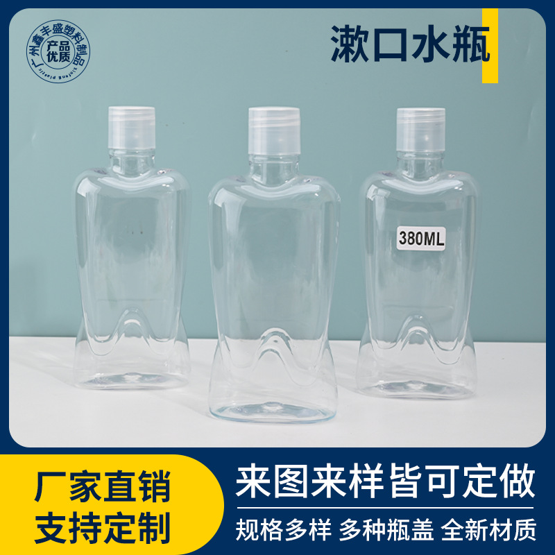 Botol datar transparan 380ml tersedia, botol obat kumur kelas atas, botol PET untuk larutan nutrisi tanaman hias, botol untuk pembersihan dan perawatan, botol kosong