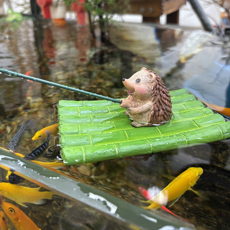 Ornamen Memancing Landak Kreatif Ornamen Kecil Dekorasi Akuarium Tangki Ikan Air yang Mengalir di Taman Lansekap Taman