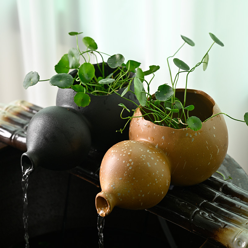 Dekorasi tangki ikan bergaya Tiongkok, dekorasi akuarium air labu keramik, filter ekologi tanaman hijau hidroponik