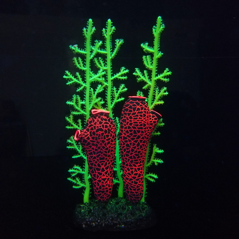 Akuarium kolam ikan simulasi pemandangan karang rumput laut pohon laut silikon rumput laut bercahaya neon simulasi pohon karang