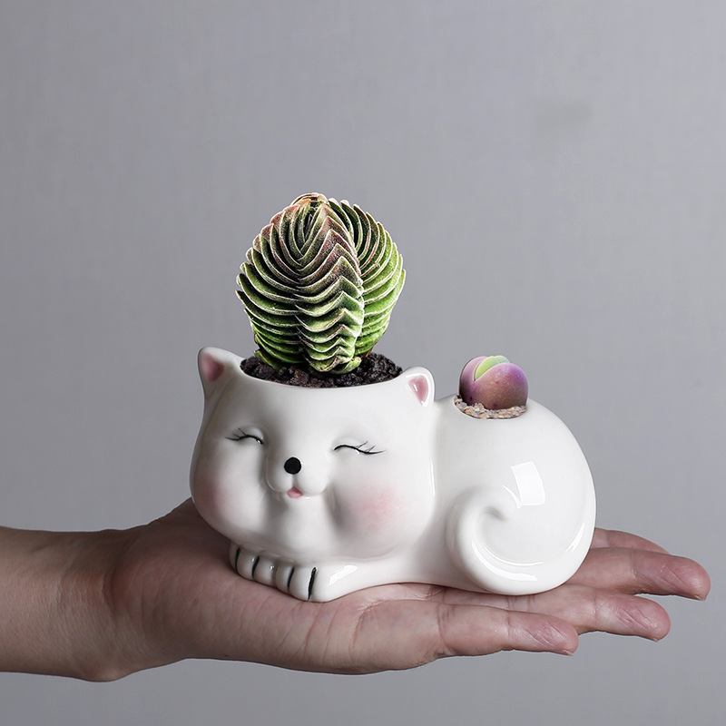 Kartun lintas batas lucu multi-daging pot bunga keramik kreatif kucing kecil hewan pot bunga keramik putih sederhana