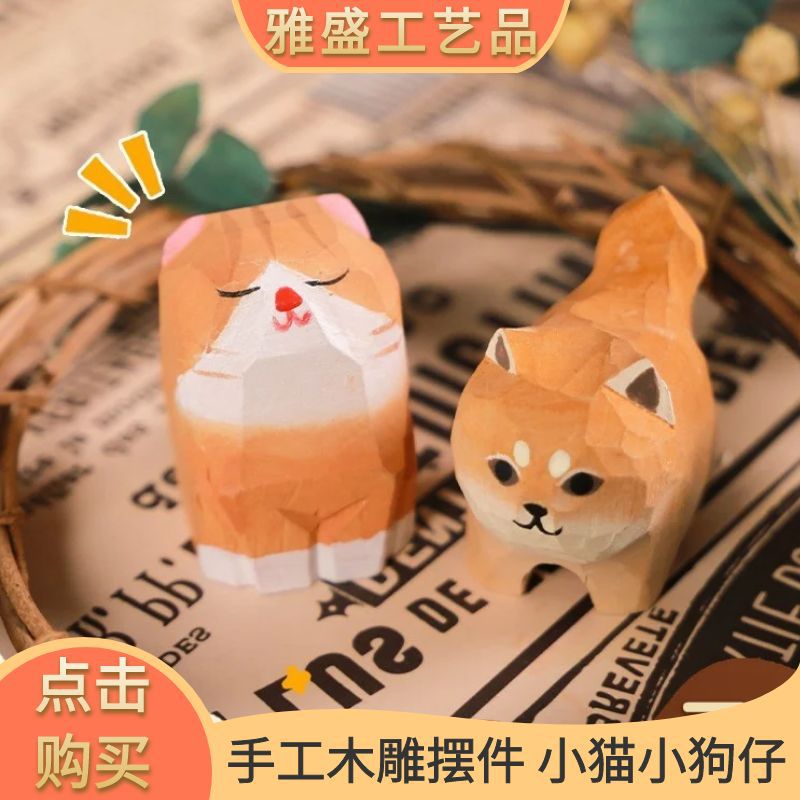 Dukungan grosir pabrik kerajinan ukiran kayu kreatif kustom anak kucing Shiba Inu Dekorasi desktop batch hadiah kecil liburan