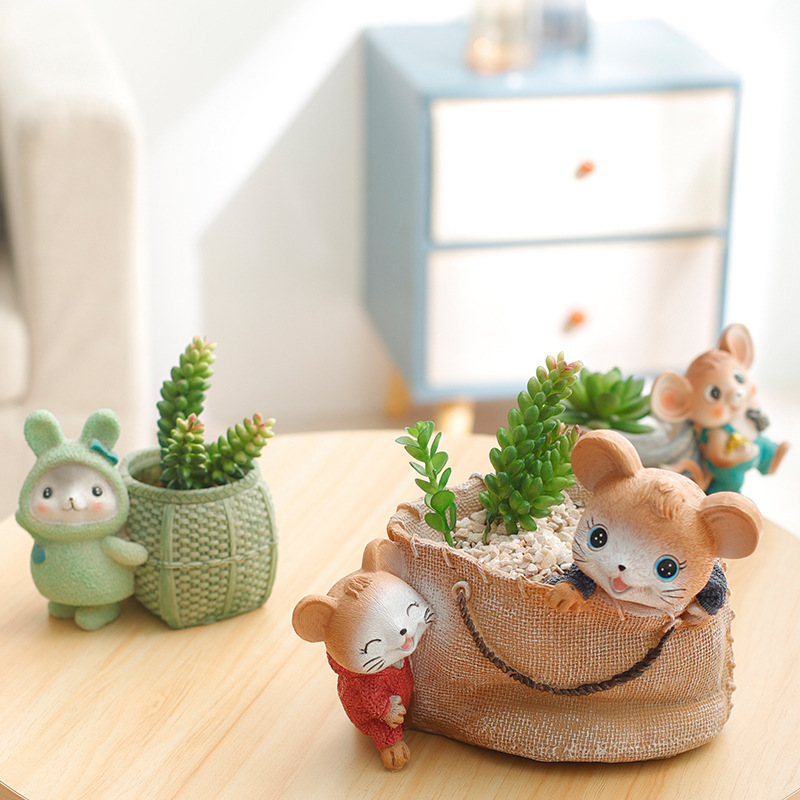 Ornamen berkebun hewan, pot bunga sukulen kartun lucu kaliber besar kepribadian kreatif