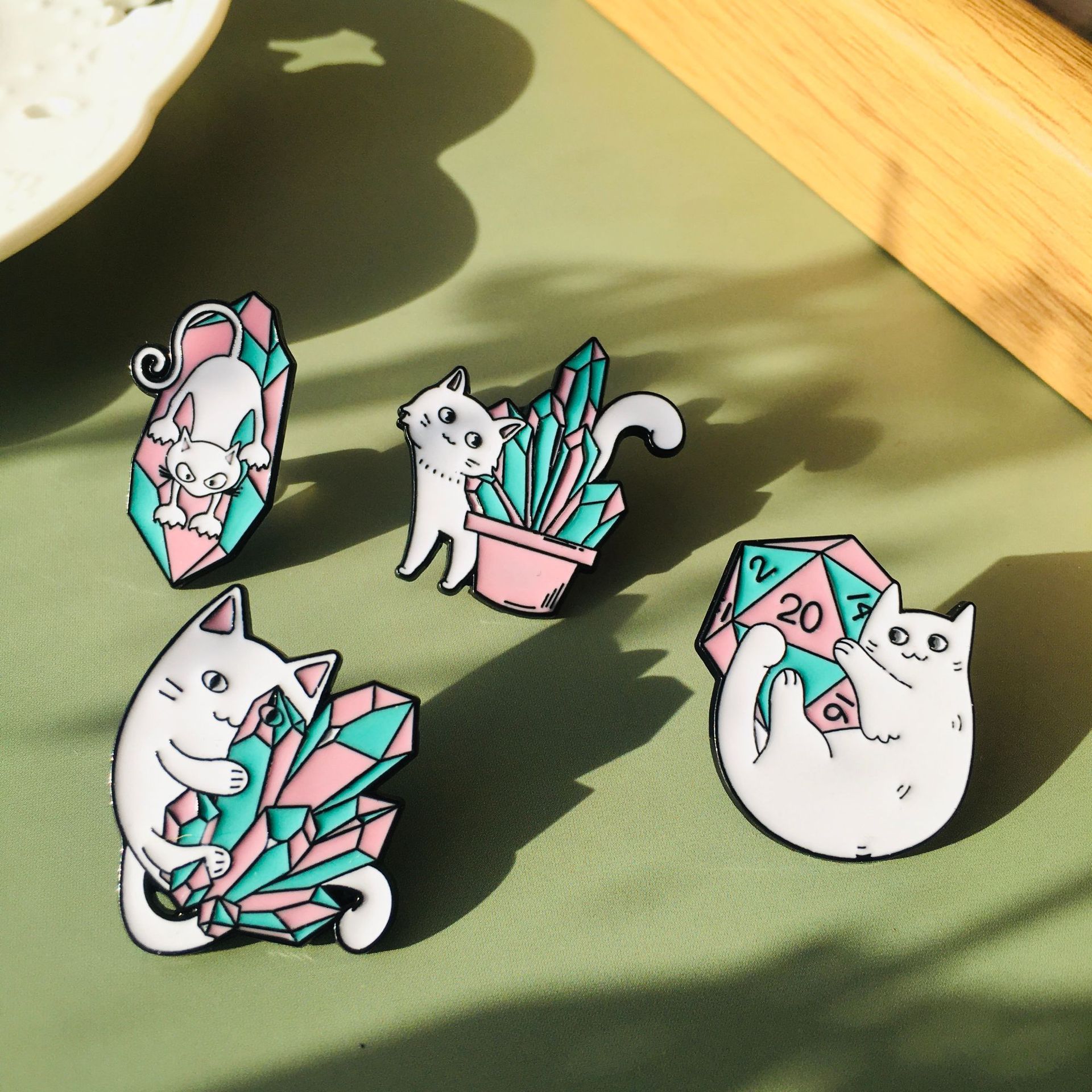 Eropa dan Amerika baru panas kartun kucing bros pot bentuk dadu cat lencana logam campuran pakaian tas sekolah pin
