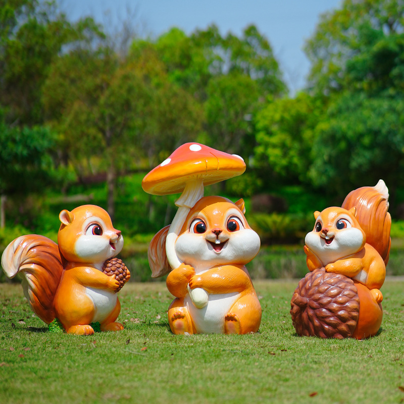Luar Ruangan Kartun Tupai Patung FRP Taman Kanak-Kanak Dekorasi Taman Rumput Hewan Ornamen Lanskap Taman
