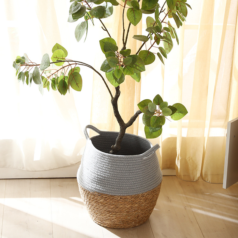 Jerami malas pot bunga penutup pot bunga berkebun dekorasi portabel lipat keranjang tanaman bunga keranjang kreatif pot bunga penutup