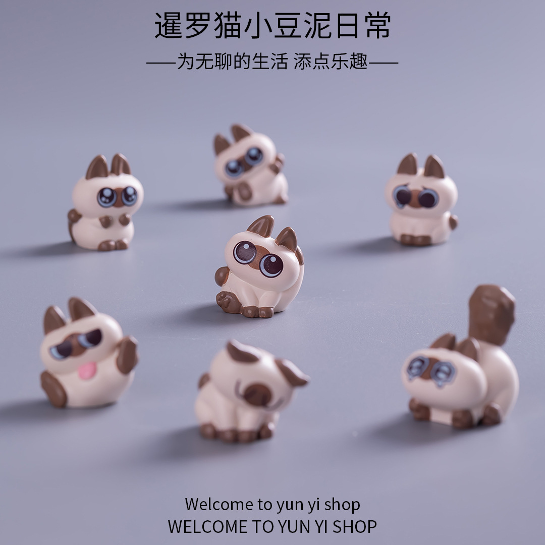 Siam kucing kacang kecil kios tanah liat kartun persediaan mikro-lanskap diy aksesoris berkebun bonsai ornamen multi-daging