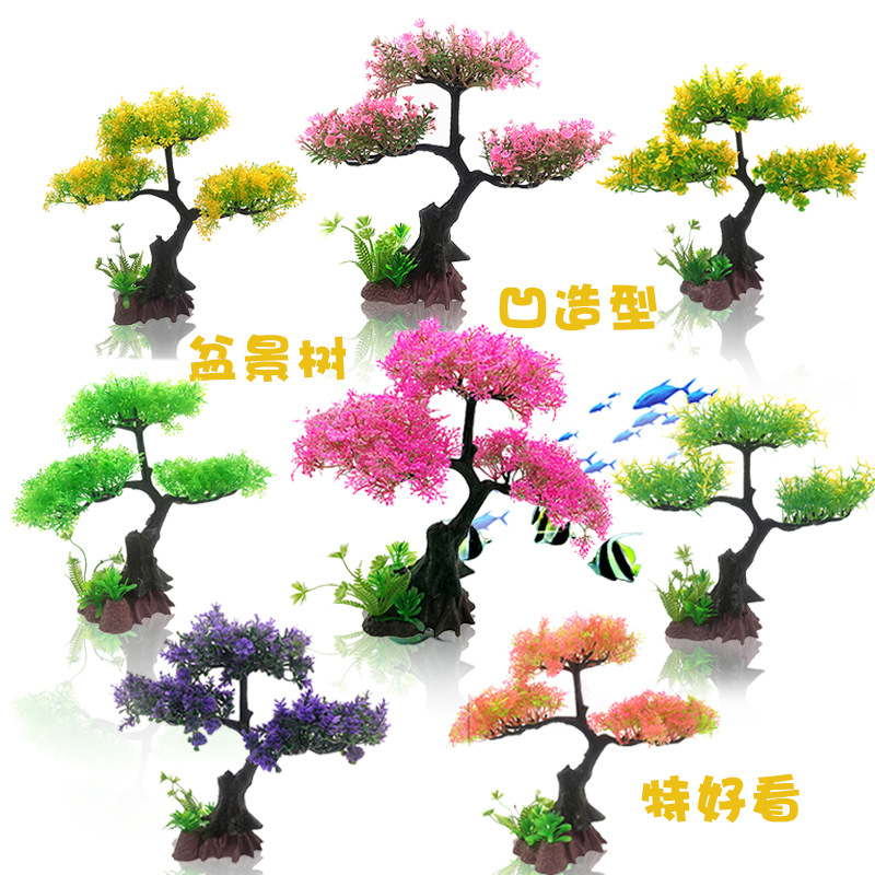 Tanaman bonsai plastik, dekorasi akuarium, hiasan aquascape, tanaman air palsu, bunga piring sushi buatan.