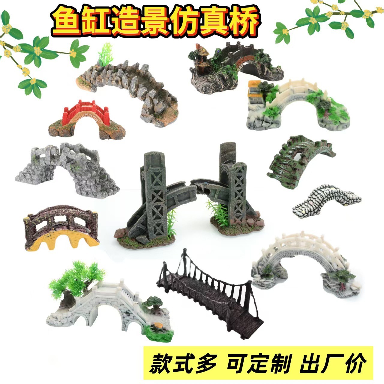 Dekorasi akuarium pemandangan buatan jembatan tangki ikan, desain akuarium batu gunung, dekorasi paviliun, batu karang