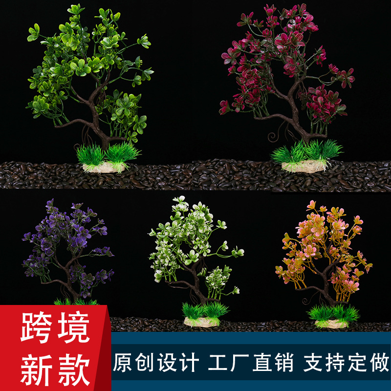 Lanskap akuarium lintas batas dekorasi lanskap tangki ikan besar lumut palsu buatan pohon tanaman air tanaman air plastik