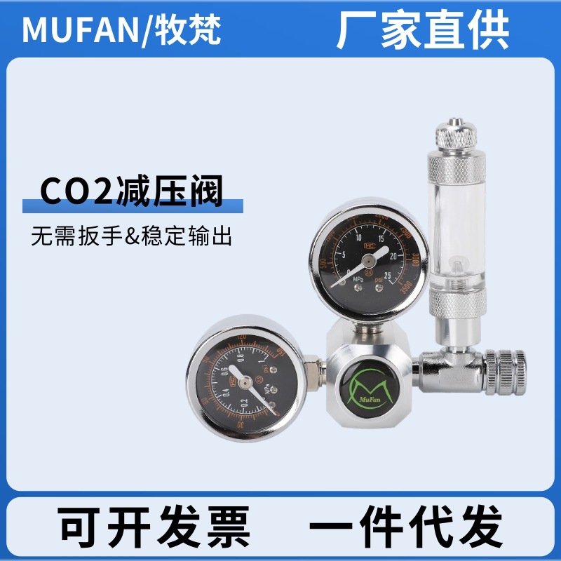 Tangki Ikan Mufan Katup Pengurang Tekanan Karbon Dioksida Tangki Tanaman Air Katup Solenoid Pemadam Api CO2 Khusus Meteran Pengurang Tekanan Tunggal dan Ganda
