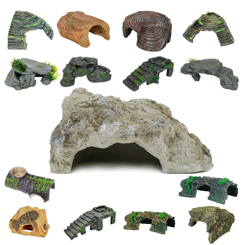 Akuarium tangki ikan dekorasi pemandangan gua keluar simulasi bebatuan lanskap mikro kerajinan DIY ornamen kecil lintas batas