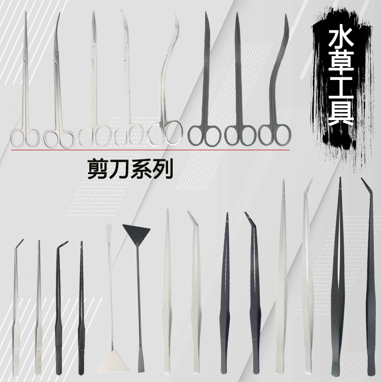 Alat baja tahan karat akuarium gunting rumput air perangkat perata pasir pinset diperpanjang pengeruk ganggang alat lanskap tangki ikan