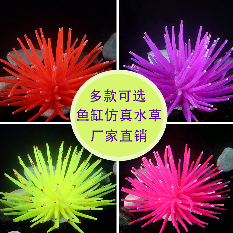 Dekorasi akuarium berupa imitasi landak laut dan karang, hiasan akuarium, terumbu karang kreatif tiga dimensi retro palsu dengan efek cahaya dan bayangan.