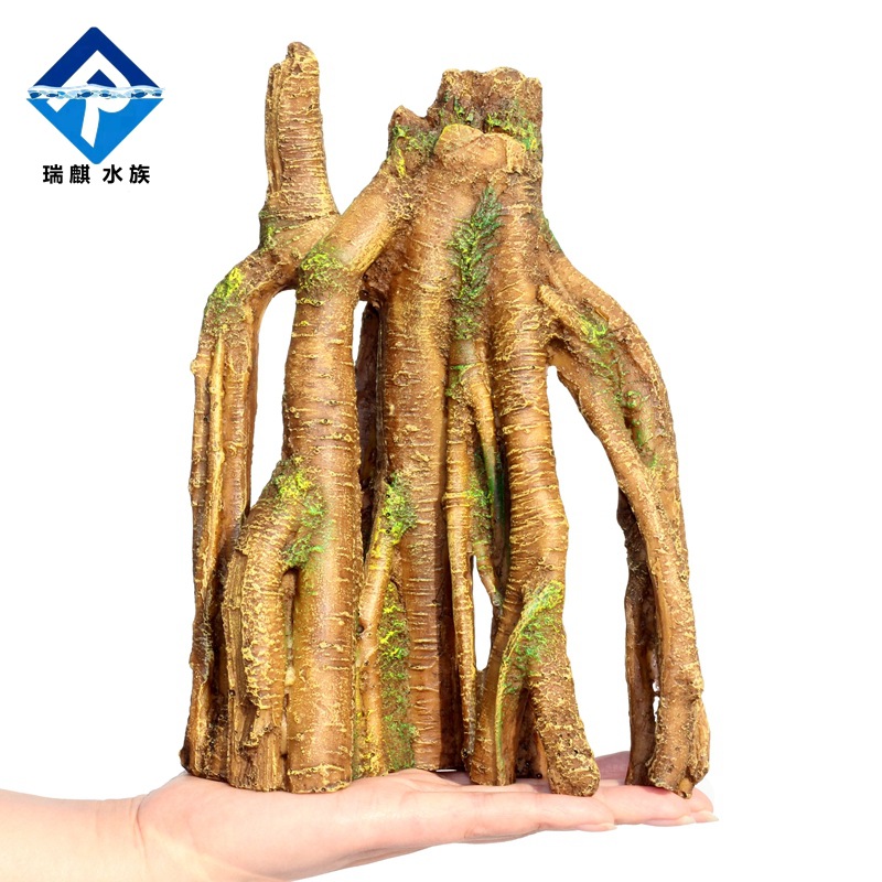Ruiqi dekorasi akuarium hewan peliharaan, dekorasi tangki rumput akar ikan, bagasi kayu rendam simulasi lanskap kreatif