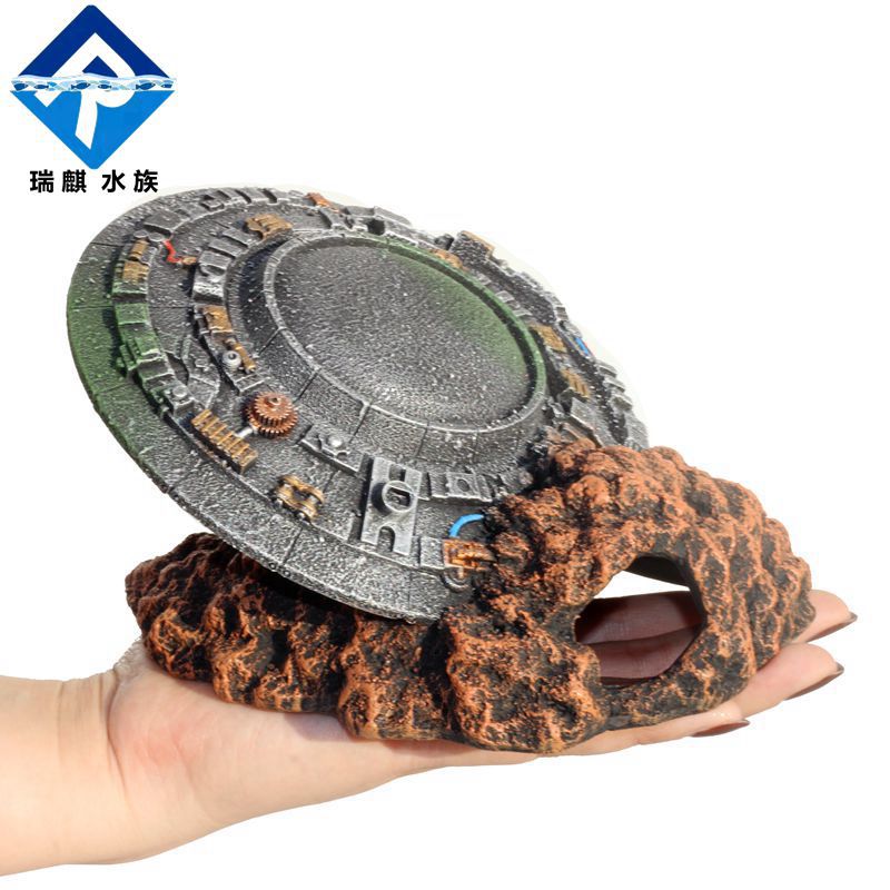 Ruiqi akuarium tangki ikan kreatif pemandangan resin dekorasi UFO puing-puing Fiksi Sains tema ikan escape cross-border eksklusif