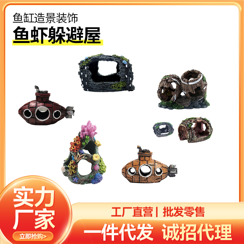 Tangki ikan dekorasi lanskap kapal selam buket penampungan dekorasi akuarium resin dekorasi Gua Ikan dan udang tempat berlindung rumah