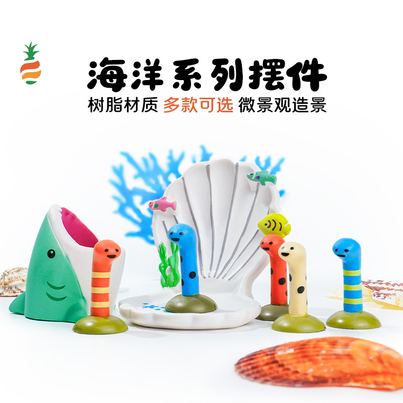 Ornamen kreatif pemandangan tangki ikan, laut musim panas cangkang atas meja komputer desktop rumah akuarium tangki ikan