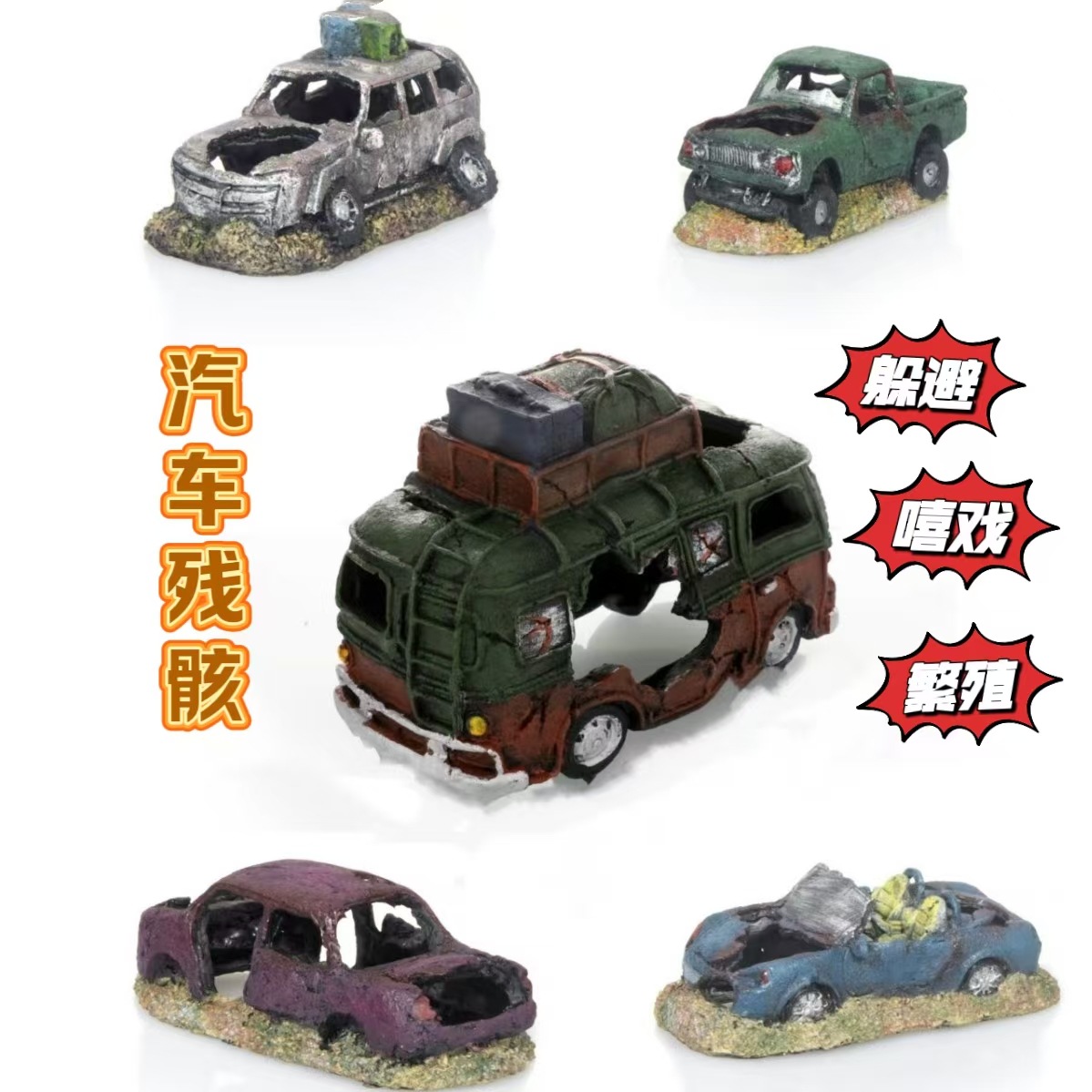 Dekorasi Aquarium Lansekap Akuarium Simulasi Reruntuhan Mobil Dekorasi Kecil Rumah Penghindaran Ikan dan Udang Orang Malas Pabrik Set