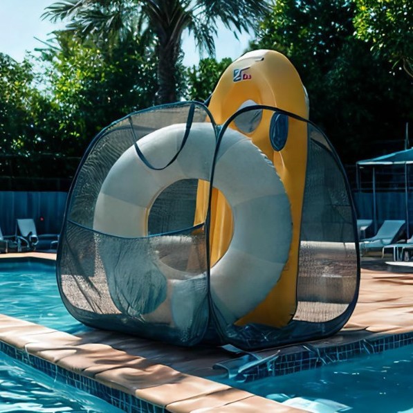 Tempat penyimpanan pelampung renang dan pakaian renang. Pelampung penyelamat mudah disimpan, dapat dilipat, dan mudah dibawa saat keluar, cocok untuk hewan peliharaan dan akuarium.