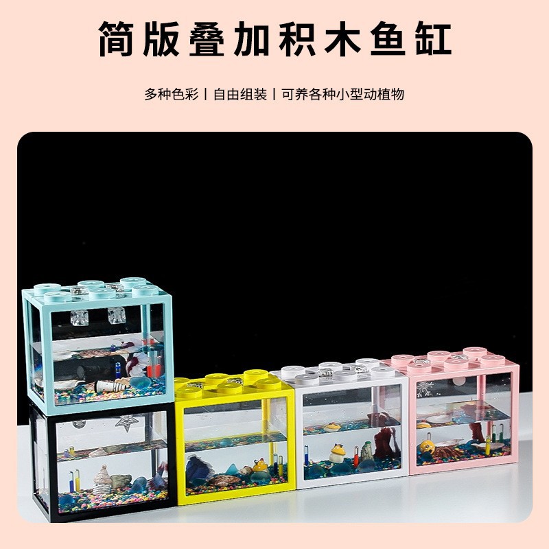 Blok bangunan desktop kantor silinder tangki ikan ekologi kecil tangki udang ikan hias ember mini tangki ikan kotak bola rumput laut dengan cahaya