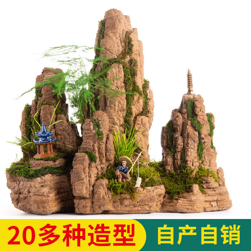 Akuarium gunung, ukuran kecil rockery mini Jianfeng lanskap batu karang resin dekorasi lanskap akuarium kecil