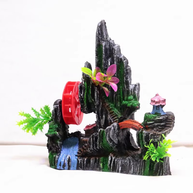 Akuarium batu karang, dekorasi lanskap tangki ikan set kincir angin berputar roda air Simulasi resin batu karang besar
