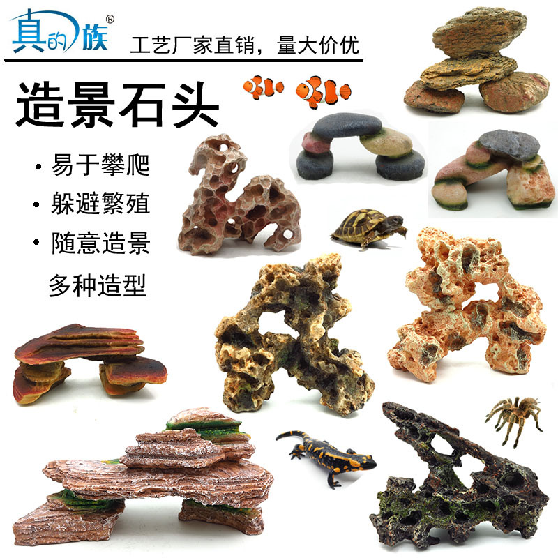 Tangki ikan pemandangan batu marmer pot kura-kura platform pengeringan platform mendaki dekorasi akuarium tangki air jerami batu lanskap batu datar