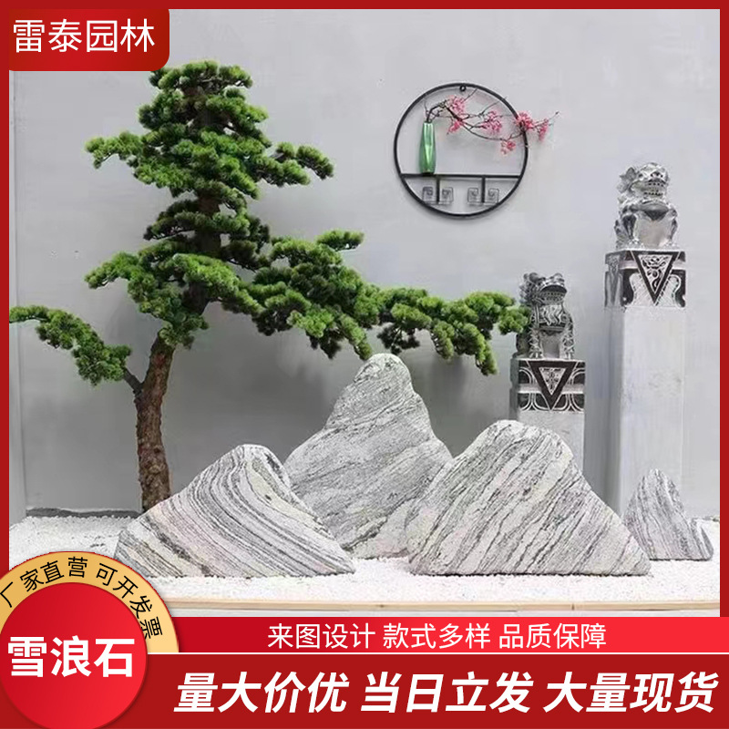 Irisan batu gelombang salju besar dan kecil, dekorasi kombinasi lanskap kering batu asli batu lanskap Taishan