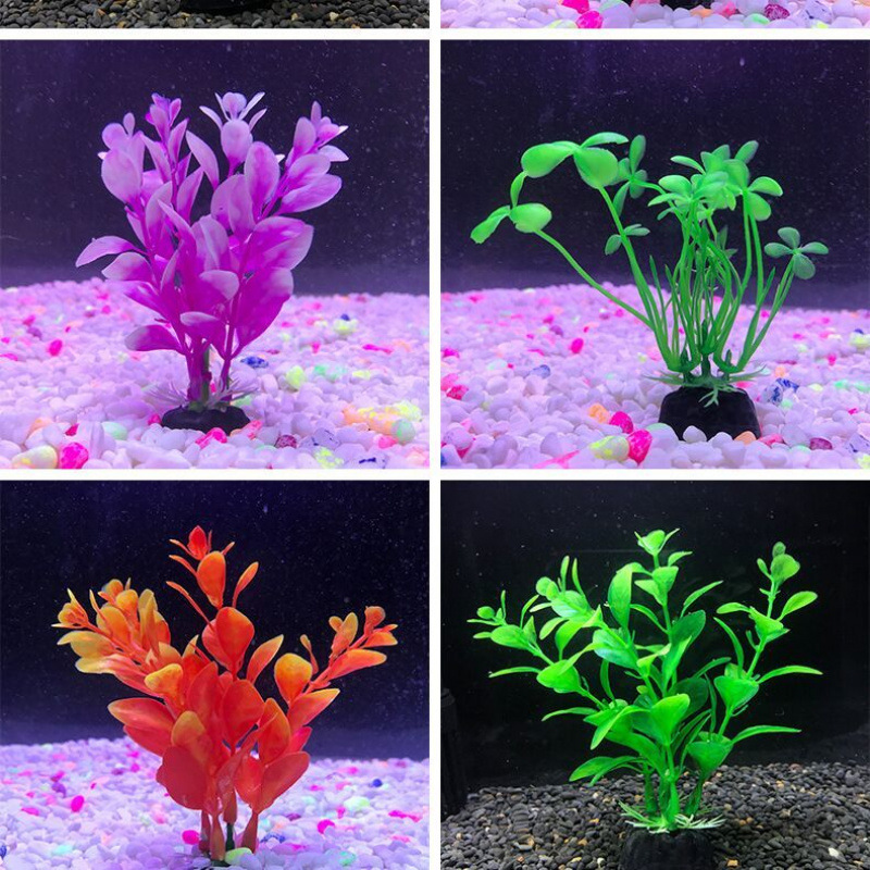Ornamen Kecil Bunga dan Bunga Palsu di Bagian Bawah Akuarium Hias Plastik di Bagian Bawah Tangki Ikan