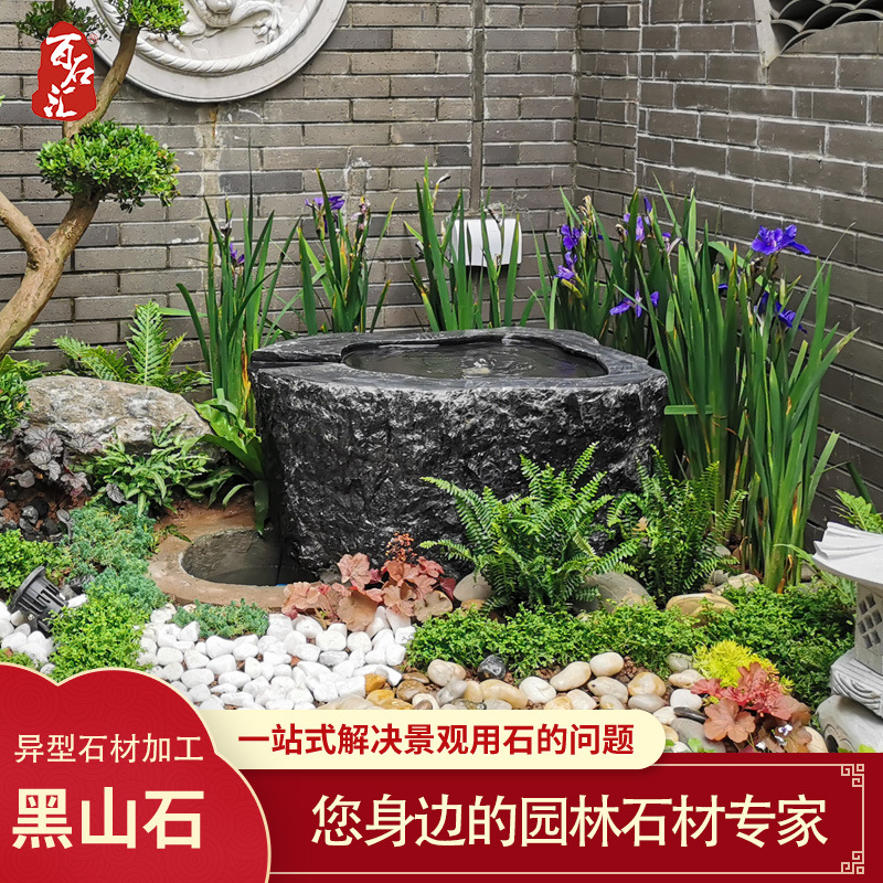 Hitam mangkuk air batu gunung gaya Cina baru pemandangan taman batu gunung hitam gaya Jepang dekorasi lanskap mangkuk air hitam pengolahan batu gunung