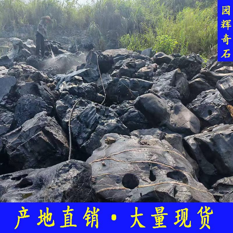 Grosir Pabrik batu hitam alami Taihu taman pemandangan pemandangan batu lubang dari 1 ton