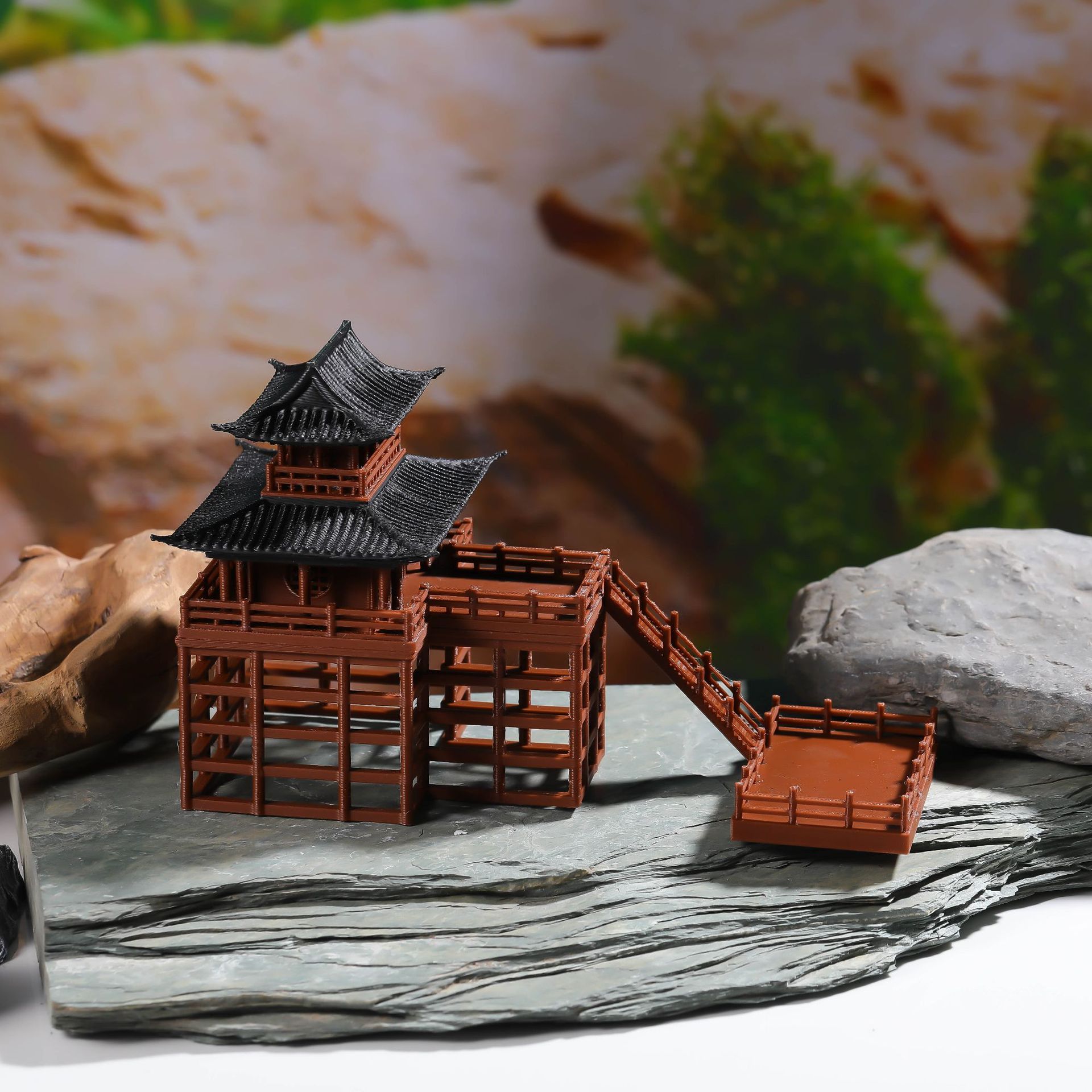 Dua lapisan bangunan gantung pemandangan Cina kuno bangunan 3D model gantung bangunan lanskap mikro ornamen kecil air dan tanah tangki ikan halaman