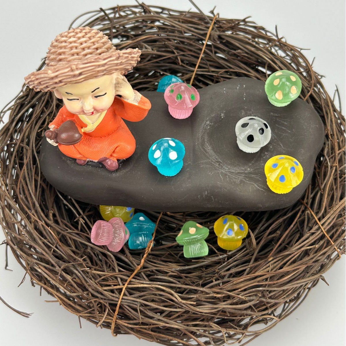 Ornamen lucu pemandangan mikro kreatif kartun jamur dicat bercahaya dekorasi diy batu bercahaya grosir lintas batas