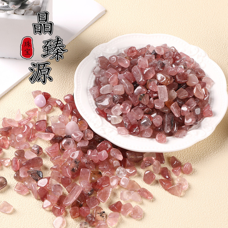 Kristal Stroberi Alami Batu Kerikil Partikel Kecil Ornamen Panci Ikan Panci Bunga Panci Pemandangan Gelang Batu Dekontaminasi Pemurnian
