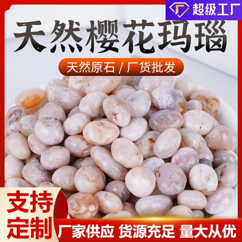 Berlisensi bunga sakura batu akik dipoles batu gulung kualitas tinggi pot bunga berbentuk telur Australia dekorasi lanskap partikel besar