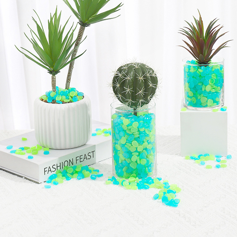 Batu bercahaya kecil untuk dekorasi vas, tanaman pot, berkebun, aquascape, batu akuarium, kerikil berpendar, batu bercahaya lintas batas
