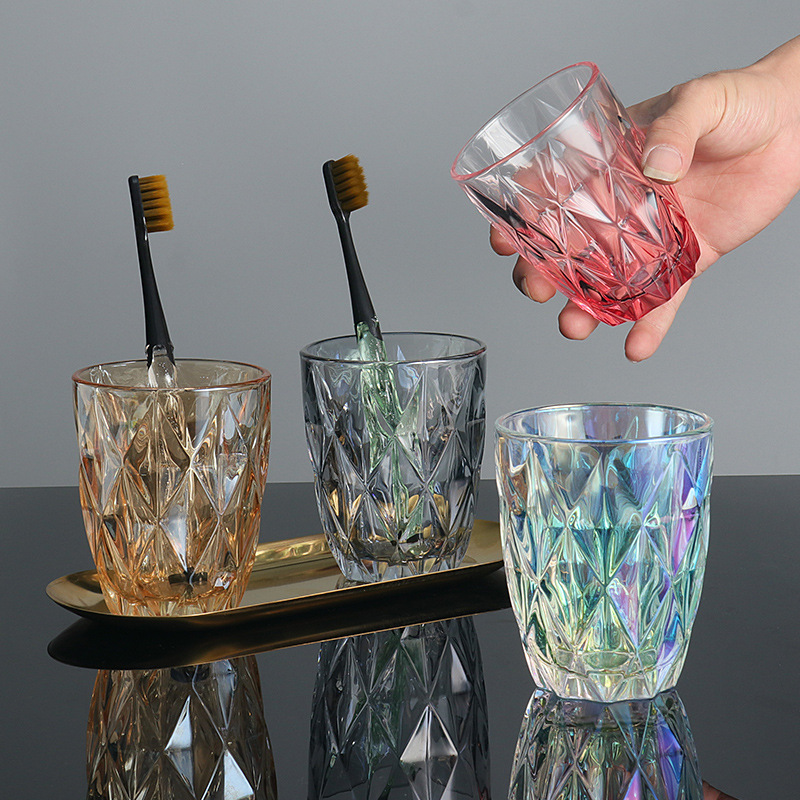 Gelas Kumur Hotel Hotel Berbentuk Berlian Sederhana Set Gelas Cuci Pasangan Rumah Tangga Gelas Kaca Warna-Warni Gelas Sikat Gigi