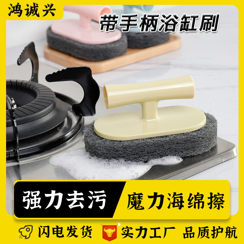 Jujiajia sikat bak mandi, dengan pegangan sikat ubin kamar mandi sikat dekontaminasi dapur sikat pembersih pot sikat spons ajaib