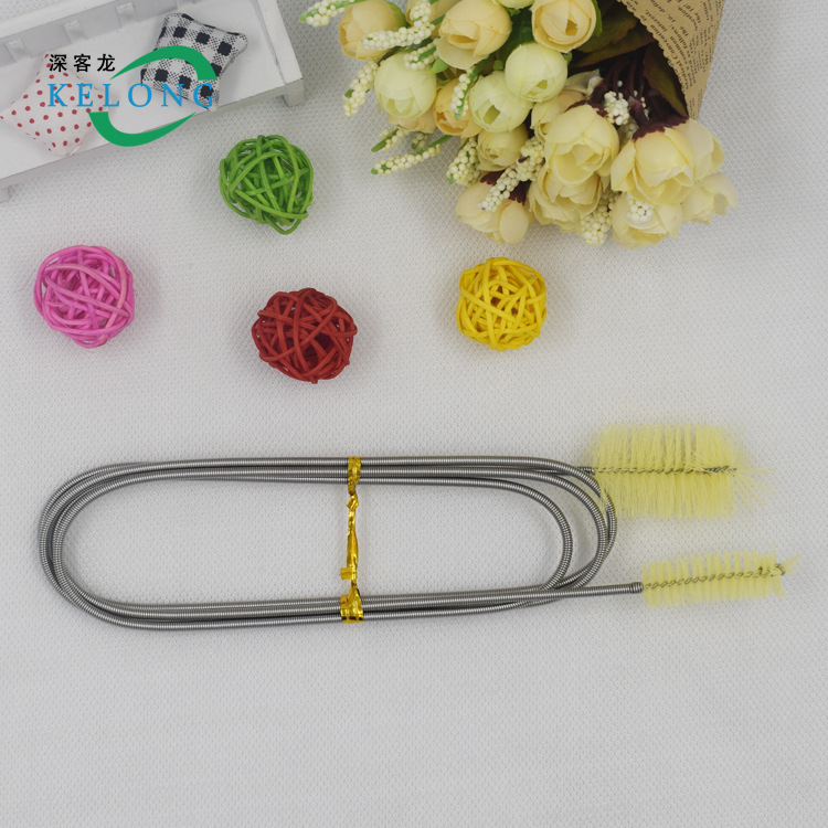 Sikat pembersih pegas wol nilon kepala ganda baja tahan karat sikat alat pengerukan kulkas sikat pipa tangki ikan akuarium