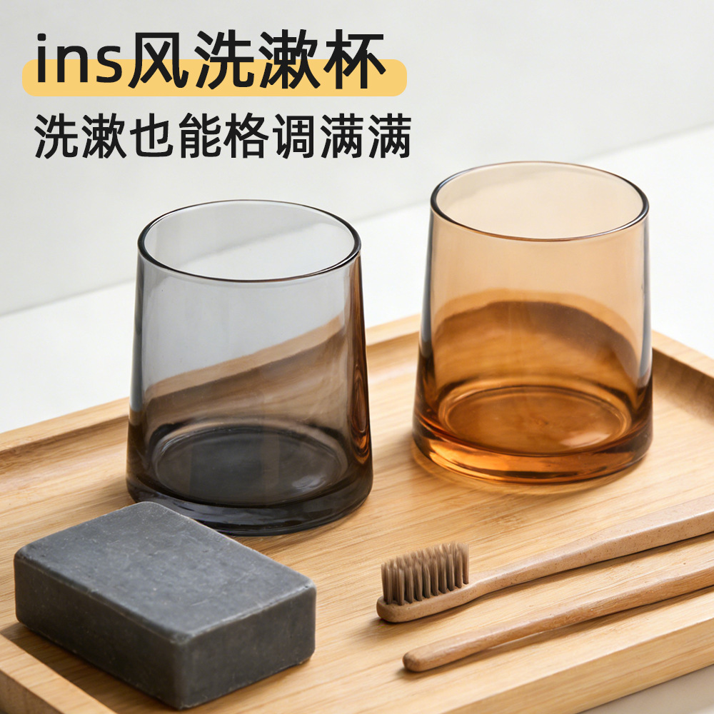 Cangkir cuci mulut kaca Nordic, cangkir sikat gigi trapesium sederhana sesuai untuk hotel rumah pasangan cangkir cuci cangkir