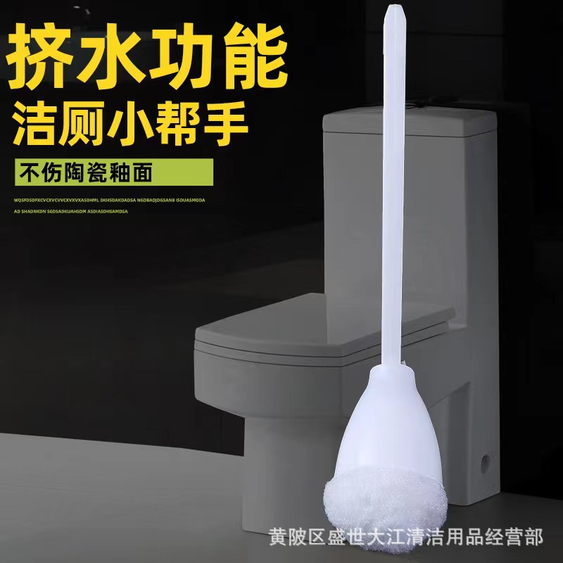 Sikat toilet tebal tanpa sudut mati, sikat katun yang dapat memeras air, sikat pembersih bulu lembut untuk kamar mandi hotel, sikat bak mandi bergagang panjang.