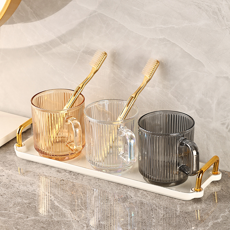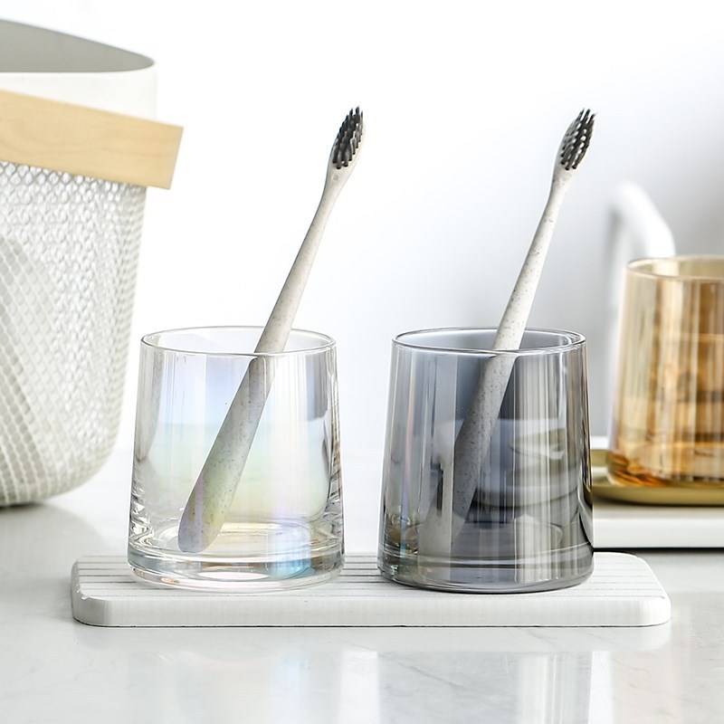 Cangkir cuci mulut kaca, gelas sikat gigi mewah ringan, cangkir sikat gigi pasangan tampilan tinggi, cangkir cuci tiga mulut, cangkir gigi