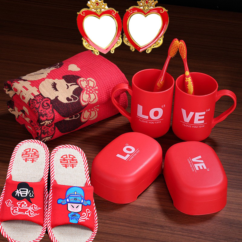 Sandal Santai Handuk Sisir Cermin Perlengkapan Pernikahan Pengantin Wanita Set Cangkir Gigi Cangkir Cuci Gigi Sikat Tempat Tidur Sikat