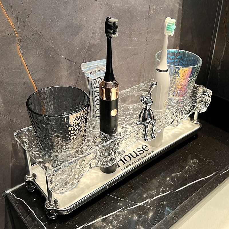 Cangkir cuci mulut kaca, ringan mewah pasangan sikat gigi setelan Internet selebriti hotel kamar mandi sikat gigi pasta gigi rak penyimpanan cangkir cuci