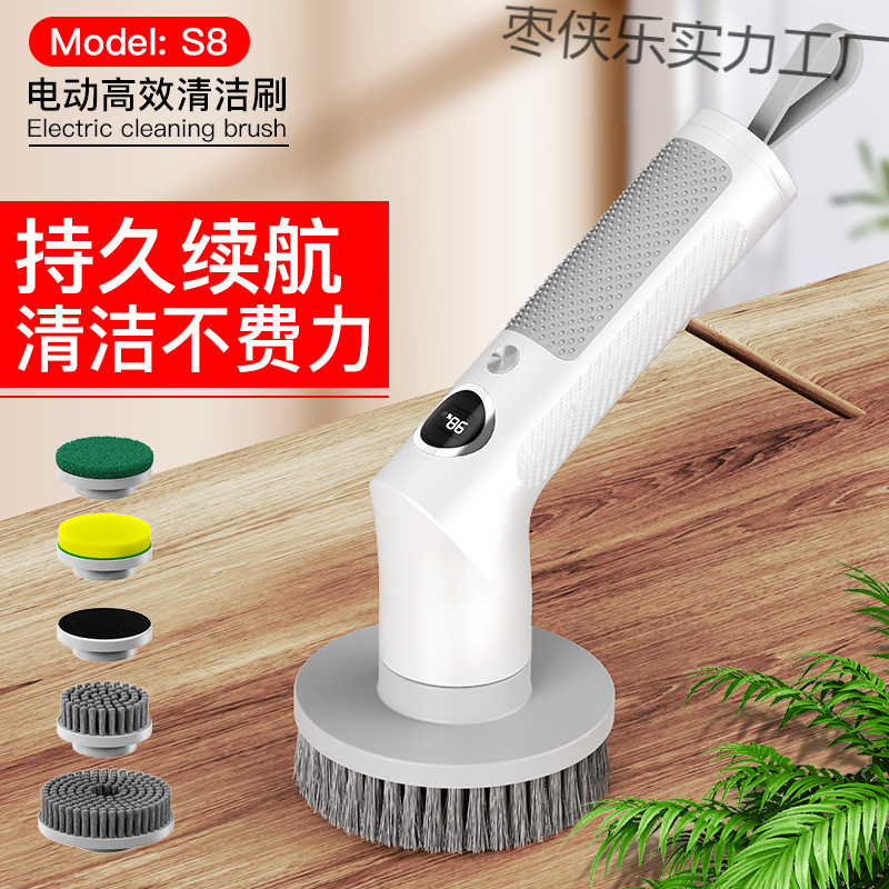 Sikat Pembersih Silinder Ikan S8 Model Baru Sikat Pembersih Listrik Pegangan Panjang yang Dapat Diteleskopik Sikat Dapur Multifungsi